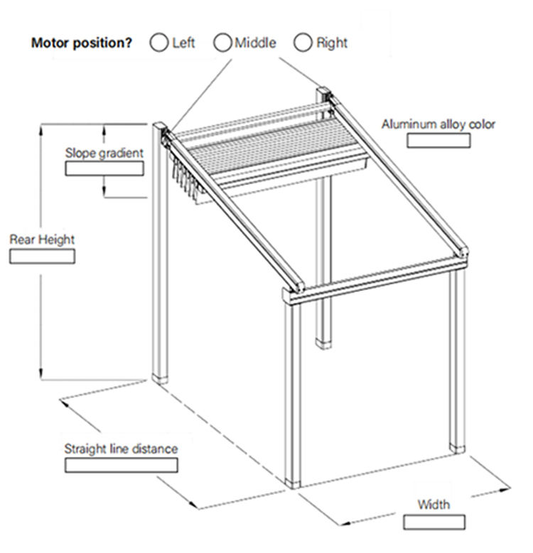 กันสาดอลูมิเนียมแบบยืดหดได้ด้วยมอเตอร์ พร้อมรีโมทคอนโทรล ม่านข้างกันน้ำ ได้รับการรับรองมาตรฐาน CE สำหรับสวนกลางแจ้ง