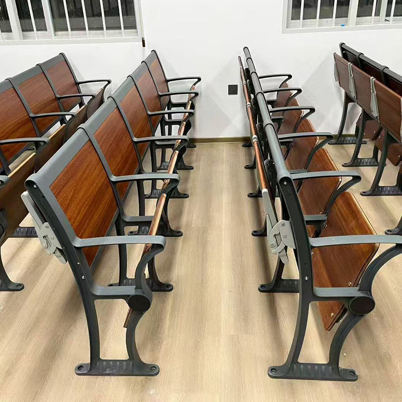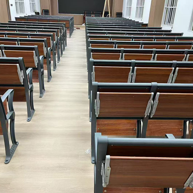 เบาะรองนั่งและพนักพิงหลังทำจากอะลูมิเนียมอัลลอยด์ทันสมัย พร้อมโต๊ะเขียนหนังสือและเก้าอี้สำหรับห้องเรียนในมหาวิทยาลัย
