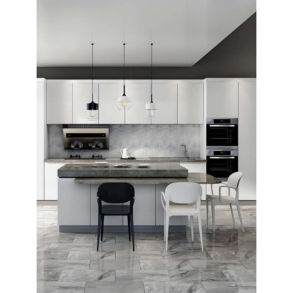 อลูมิเนียมที่ทันสมัยในตัวตู้ครัวผลิตภัณฑ์ห้องครัวสีขาวหรูหรา
