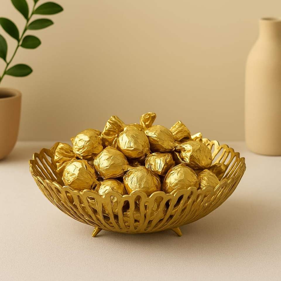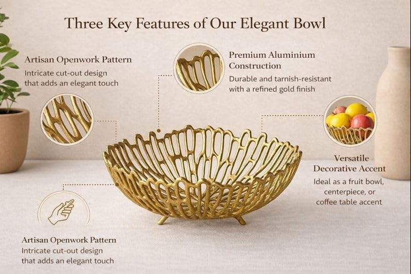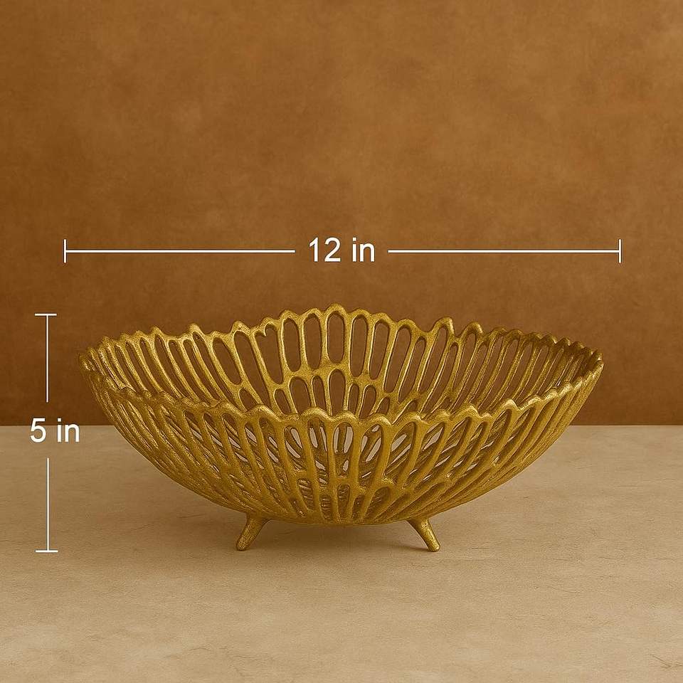 ชามอะลูมิเนียมตกแต่งทันสมัย ดีไซน์ตาข่ายโลหะหล่อขึ้นรูปด้วยมือ สำหรับใส่ผลไม้ ผัก ของตกแต่งกลางโต๊ะ ใช้จัดระเบียบในบ้านและห้องครัว