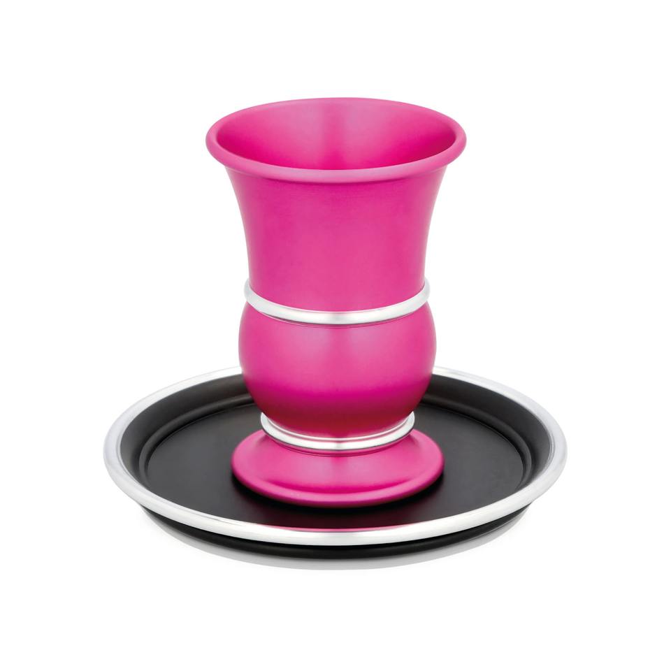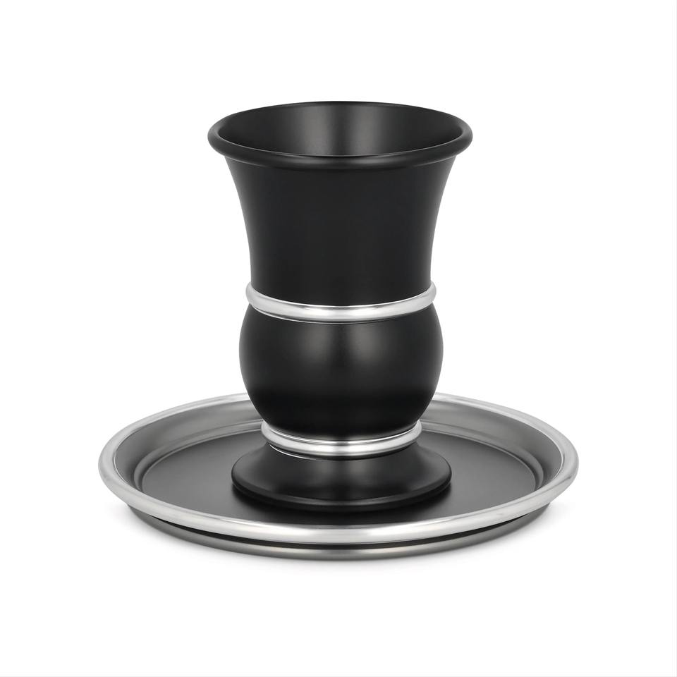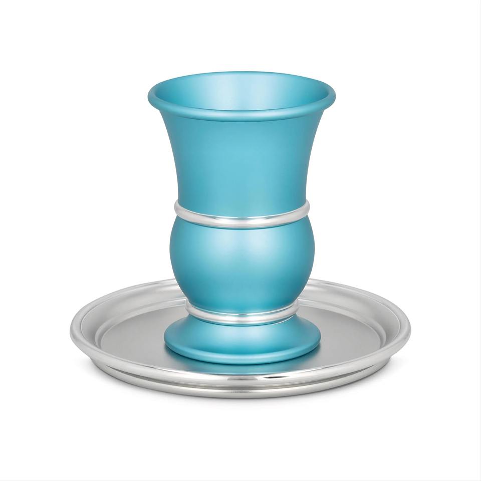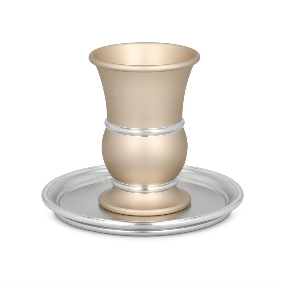 Modern Aluminum Gold Kiddush Cup Saucer Silver Plated Eco-Friendly Sustainable Customizable Color Shabbat Wine Goblet Jewish