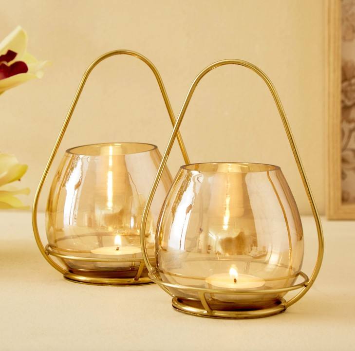 โคมไฟแก้วสีอำพันทันสมัย พร้อมที่จับโลหะสีทอง เป็นมิตรกับสิ่งแวดล้อม ปราศจากสารตะกั่ว ทำด้วยมือ เหมาะสำหรับตกแต่งบ้านในเทศกาลคริสต์มาสและอีสเตอร์