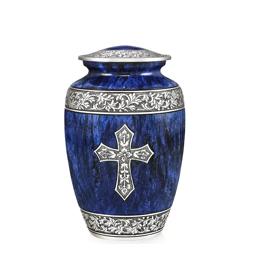 โกศบรรจุอัฐิแบบอเมริกันสมัยใหม่สำหรับผู้ใหญ่ สีดำและสีทอง เงางาม เป็นมิตรกับสิ่งแวดล้อม พร้อมถุงกำมะหยี่
