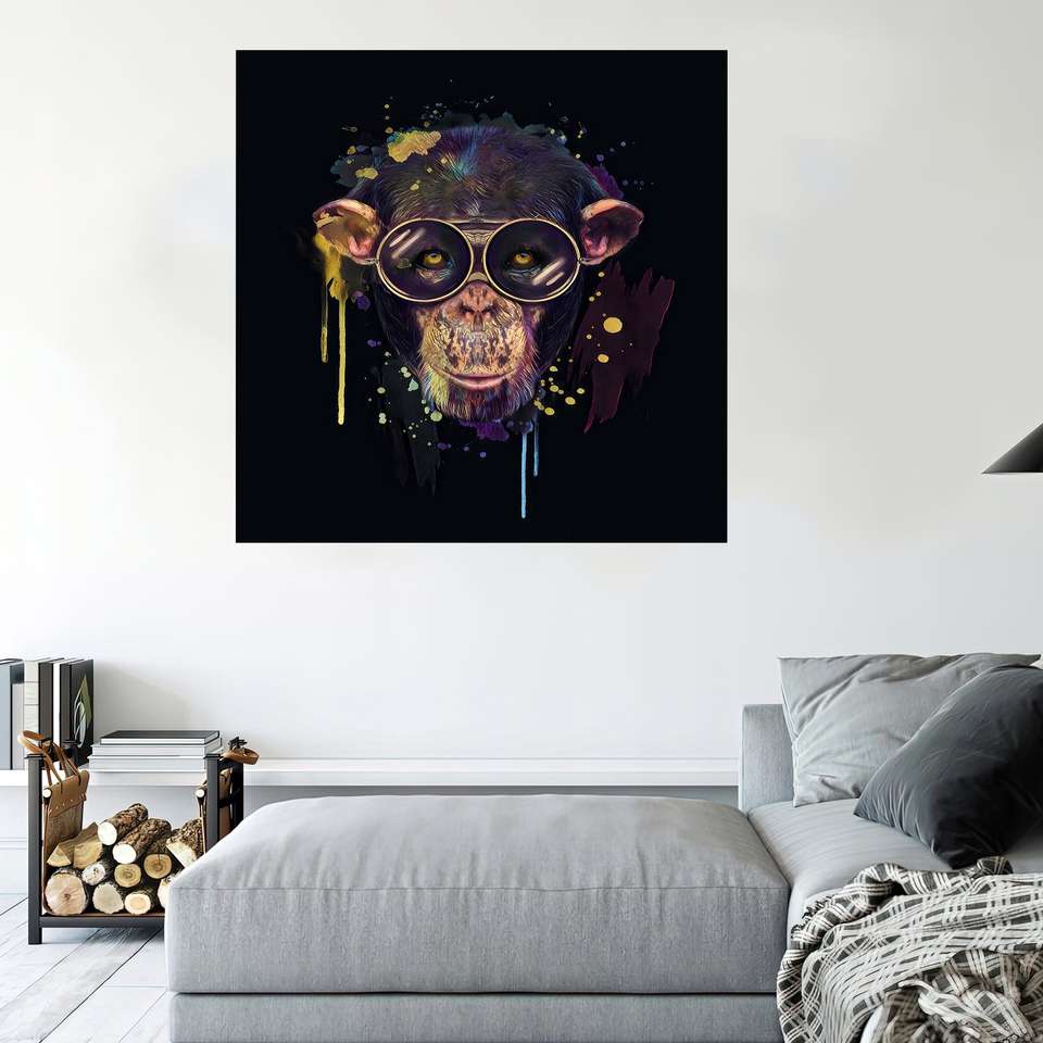 โปสเตอร์ผ้าใบลายสัตว์สมัยใหม่ - งานศิลปะตกแต่งผนังสีดำแบบพิมพ์ลาย ห่อหุ้มอย่างดี