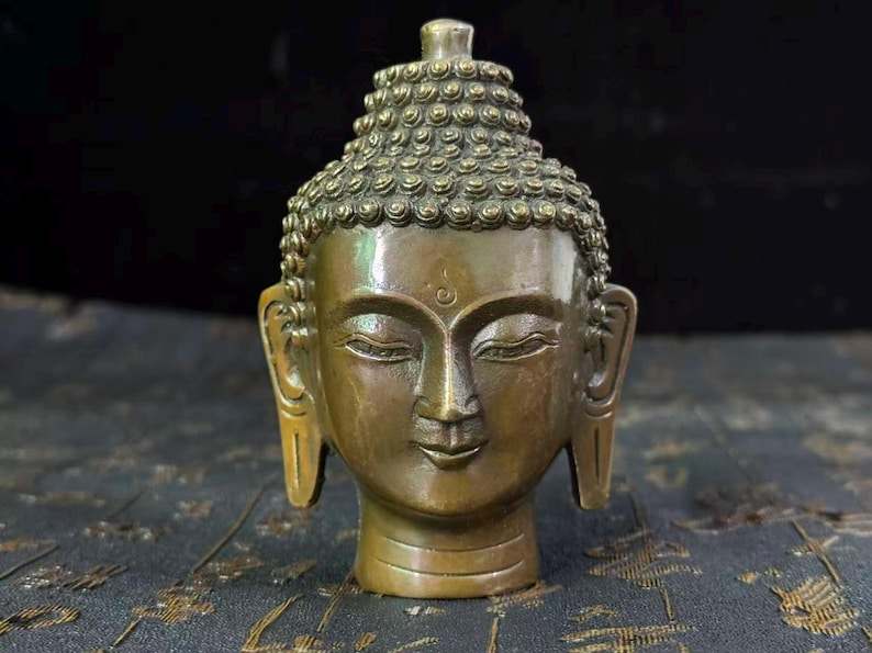 Modern Antique Brass Buddha Head Statue Artistic Durable Metal Handicraft Home Decor