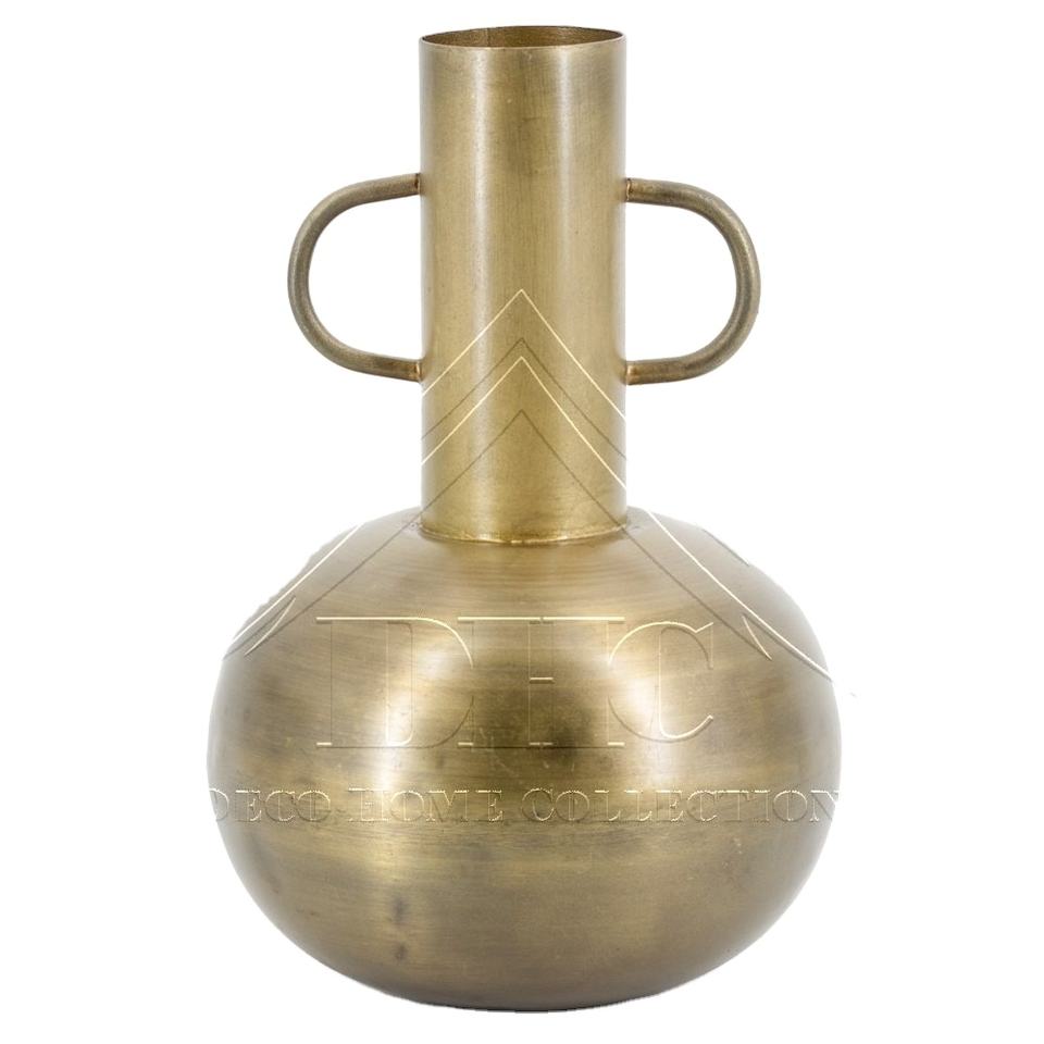 แจกันโลหะทองเหลืองโบราณสไตล์โมเดิร์น แจกันทรงกลมสำหรับดอกไม้ แจกันเหล็กสีทองหรูหราสำหรับตกแต่งบ้าน โรงแรม งานแต่งงาน