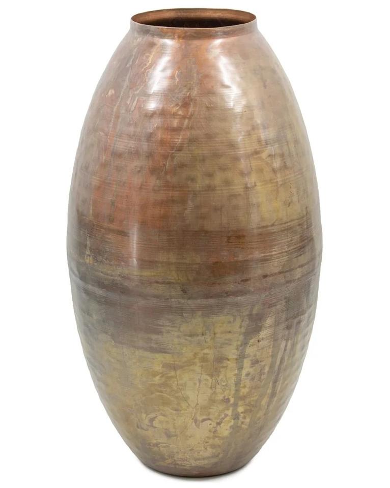 แจกันดอกไม้ทองแดงตีลายโบราณแบบทันสมัย | แจกันโลหะตกแต่งตั้งพื้นขนาดใหญ่สำหรับตกแต่งบ้านและโรงแรมสุดหรู