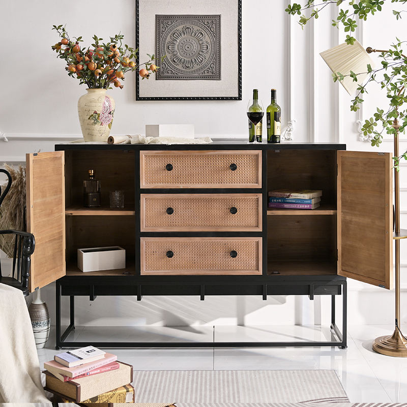 โต๊ะคอนโซลเก็บของทรงสี่เหลี่ยมผืนผ้า ทำจากไม้เนื้อแข็งและโลหะ สไตล์โมเดิร์นโบราณ พร้อมลิ้นชัก สำหรับโรงแรม ห้องรับประทานอาหาร ห้องโถง และห้องนั่งเล่น