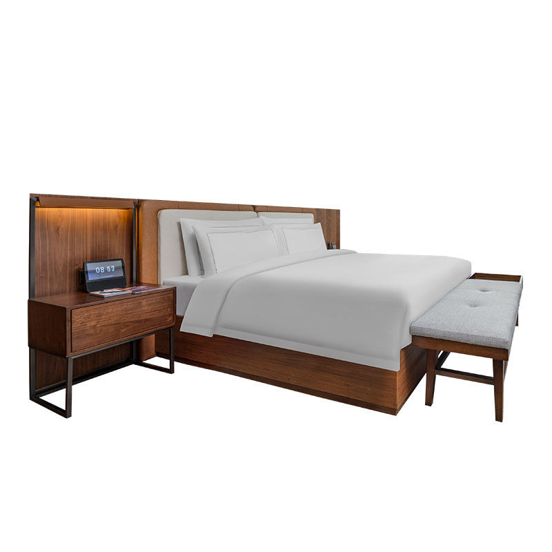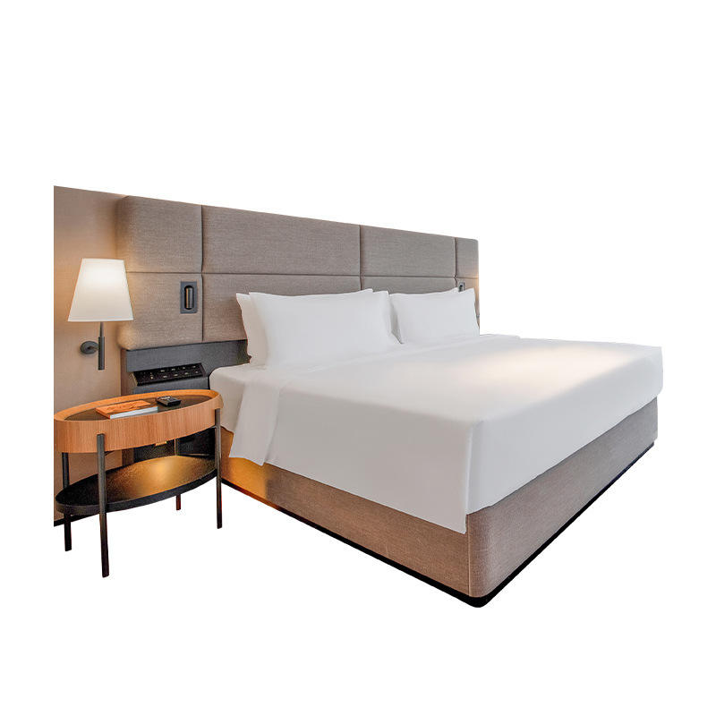 เฟอร์นิเจอร์ห้องนอนอพาร์ทเมนท์ทันสมัย เตียงไม้ขนาดคิงไซส์/ควีนไซส์สั่งทำพิเศษ พร้อมโต๊ะข้างเตียง หัวเตียง และชุดที่นอน ระดับโรงแรม 3 ดาว