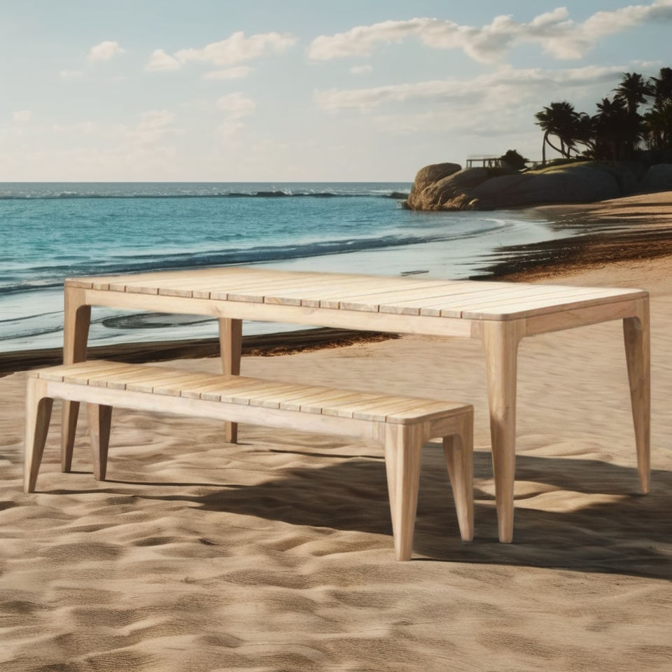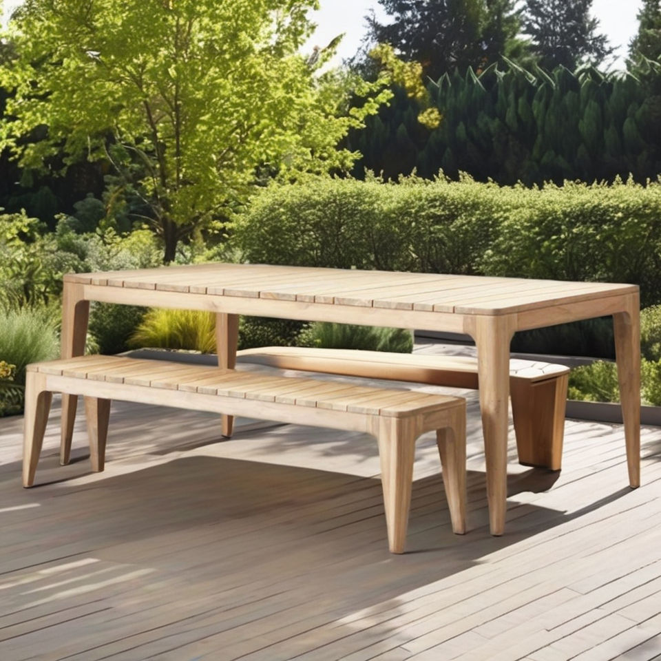 ชุดโต๊ะรับประทานอาหารกลางแจ้งสำหรับลานสวนสระว่ายน้ำและโรงแรมม้านั่งไม้สักที่ได้รับแรงบันดาลใจจากโค้งแบบทันสมัย