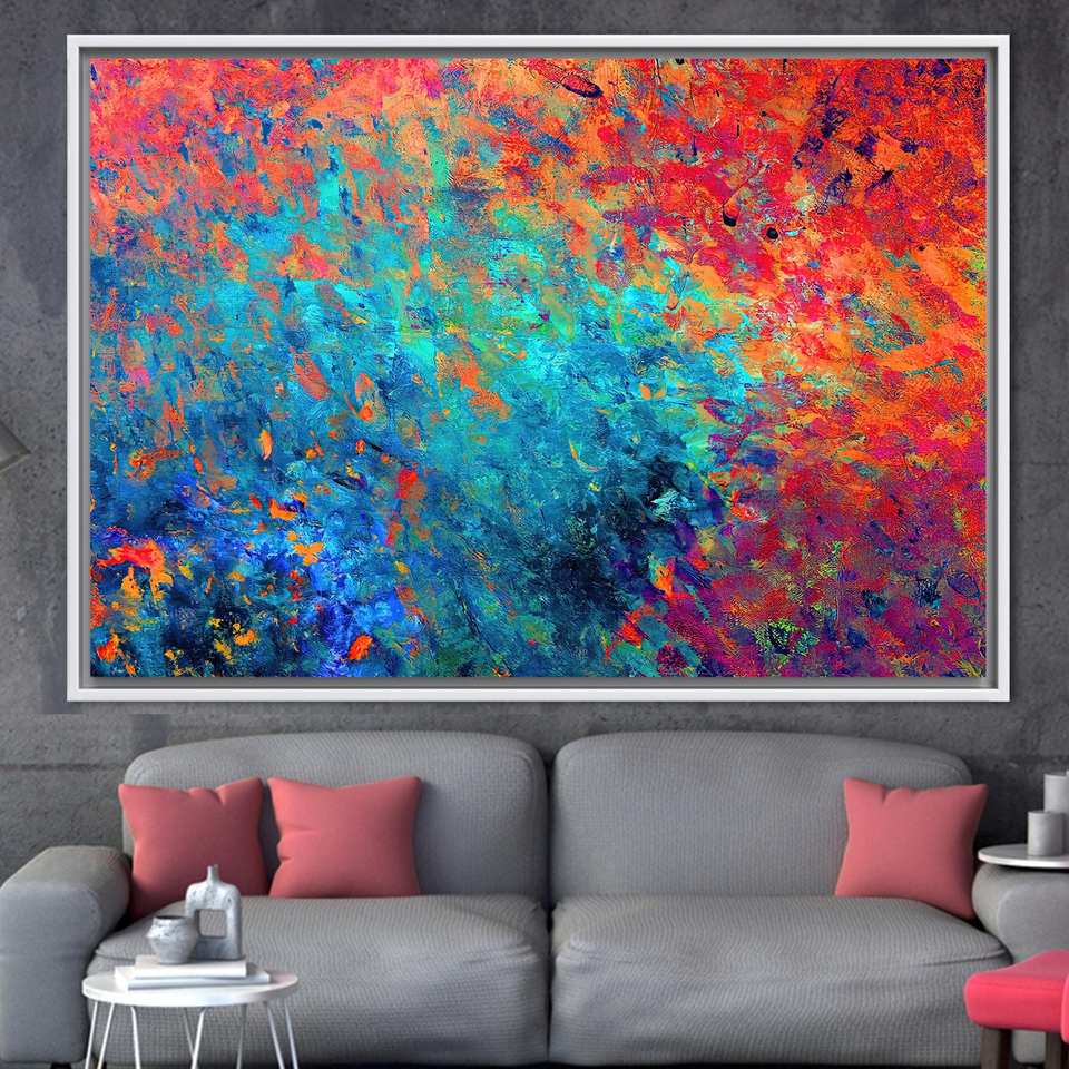 ภาพพิมพ์บนผ้าใบศิลปะสมัยใหม่ - ของตกแต่งผนังสีสันสดใสแบบนามธรรม งานศิลปะพิมพ์ร่วมสมัย 1P:กรอบสีขาว