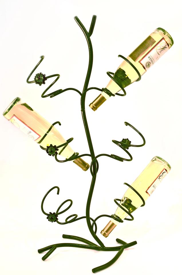 ชั้นวางไวน์เหล็กสีเขียวลายคลาสสิกสำหรับตั้งโต๊ะ จัดแสดงได้ 6 ขวด ลายทาง ทำด้วยมือ พกพาสะดวก