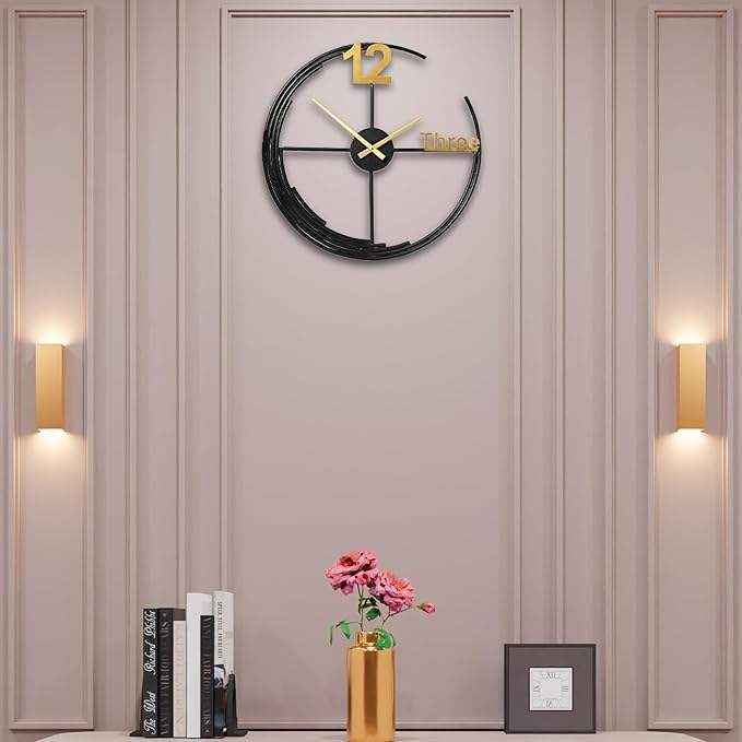 นาฬิกาแขวนผนังโลหะดีไซน์ศิลปะสมัยใหม่ รูปทรงพระจันทร์เสี้ยว ดีไซน์โดดเด่น ใช้พลังงานจากแบตเตอรี่ ระบบควอตซ์ เงียบไร้เสียง เข็มสีทอง ตกแต่งบ้าน ห้องนั่งเล่น