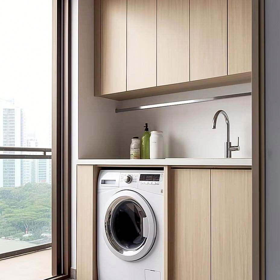 ตู้ซักผ้าระเบียงทันสมัยห้องนั่งเล่นตู้เก็บของสะดวกในการเข้าถึงเครื่องซักผ้า