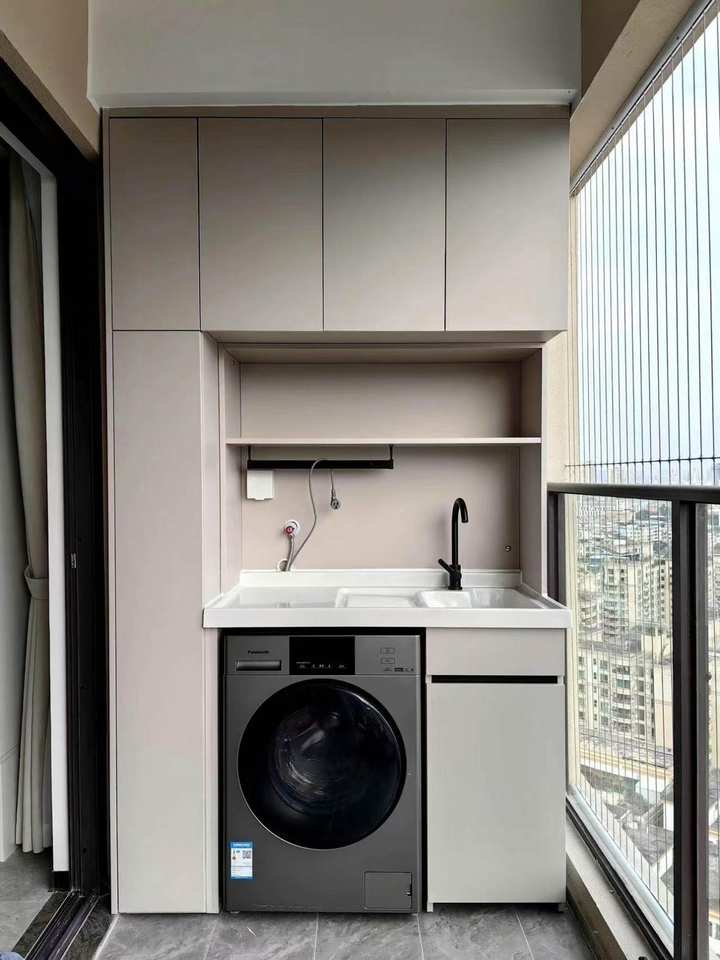 Modern Balcony Laundry Sink Cabinet Living Room Storage Cabinet with Convenient Washing Machine Access