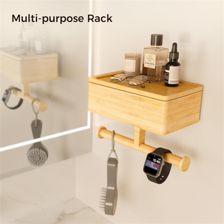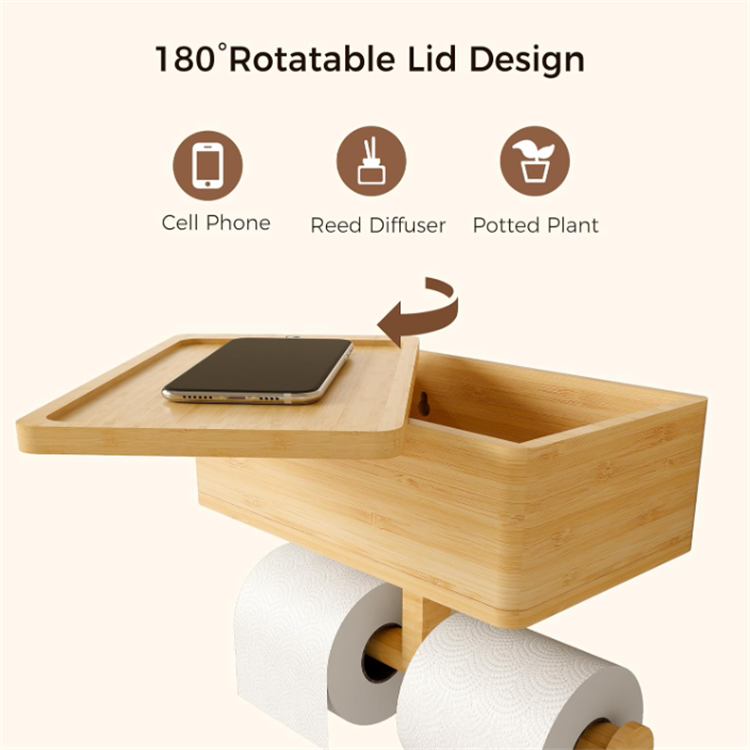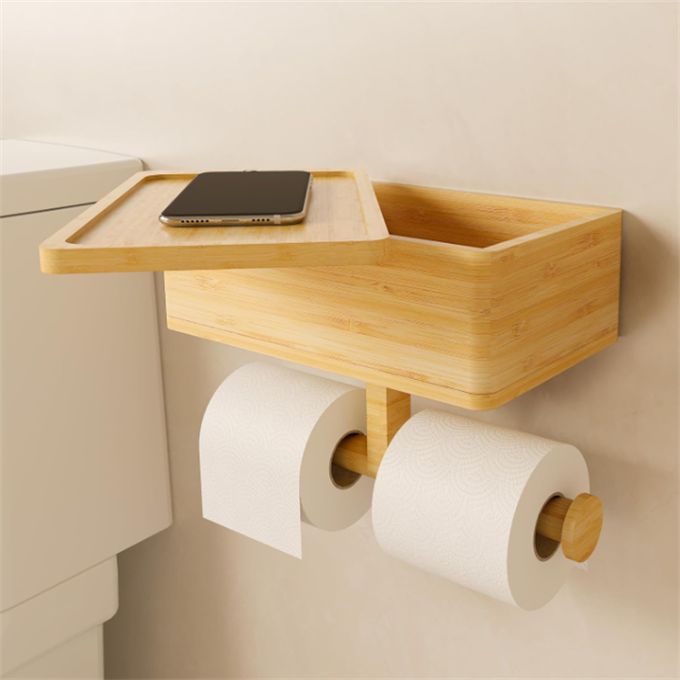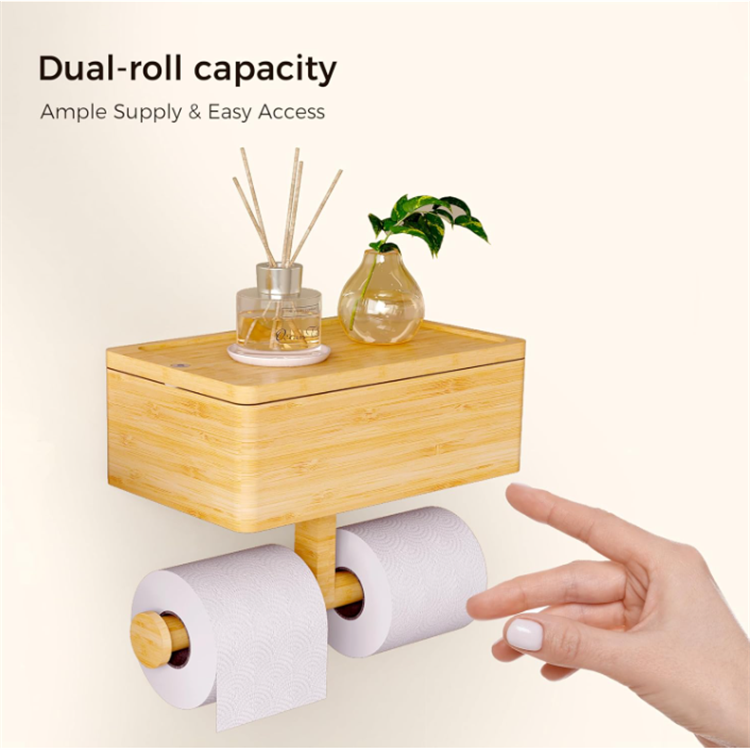 Modern Bamboo Toilet Tissue Paper Roll Holder with Storage Box Home Use Wooden Design