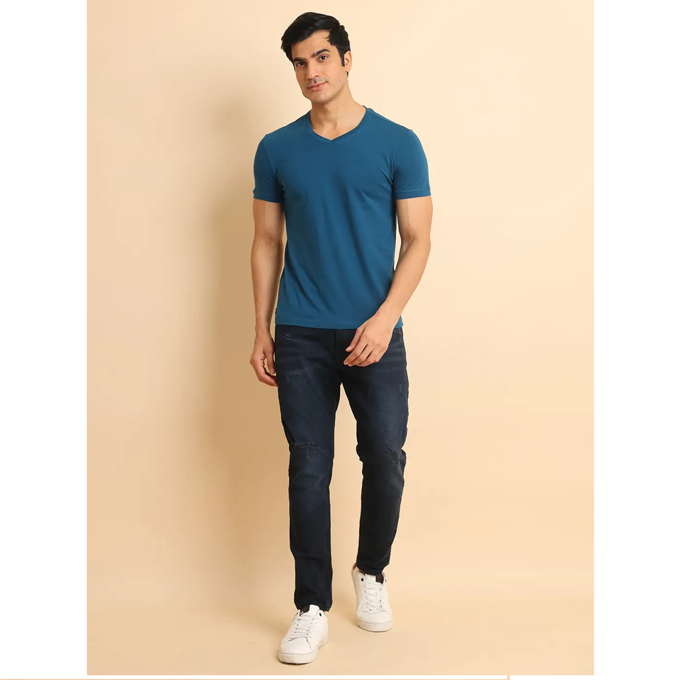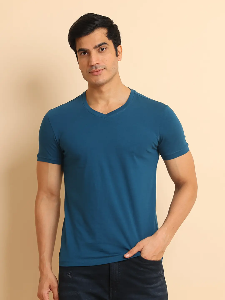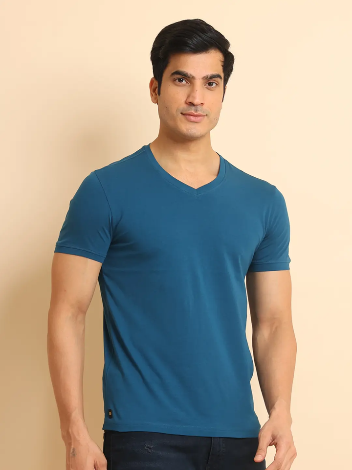 เสื้อยืดคอวีสไตล์โมเดิร์นสำหรับใส่สบายอเนกประสงค์เสื้อยืดผ้าฝ้าย100% ครึ่งแขนยืดได้สำหรับสวมใส่สบายทุกวัน