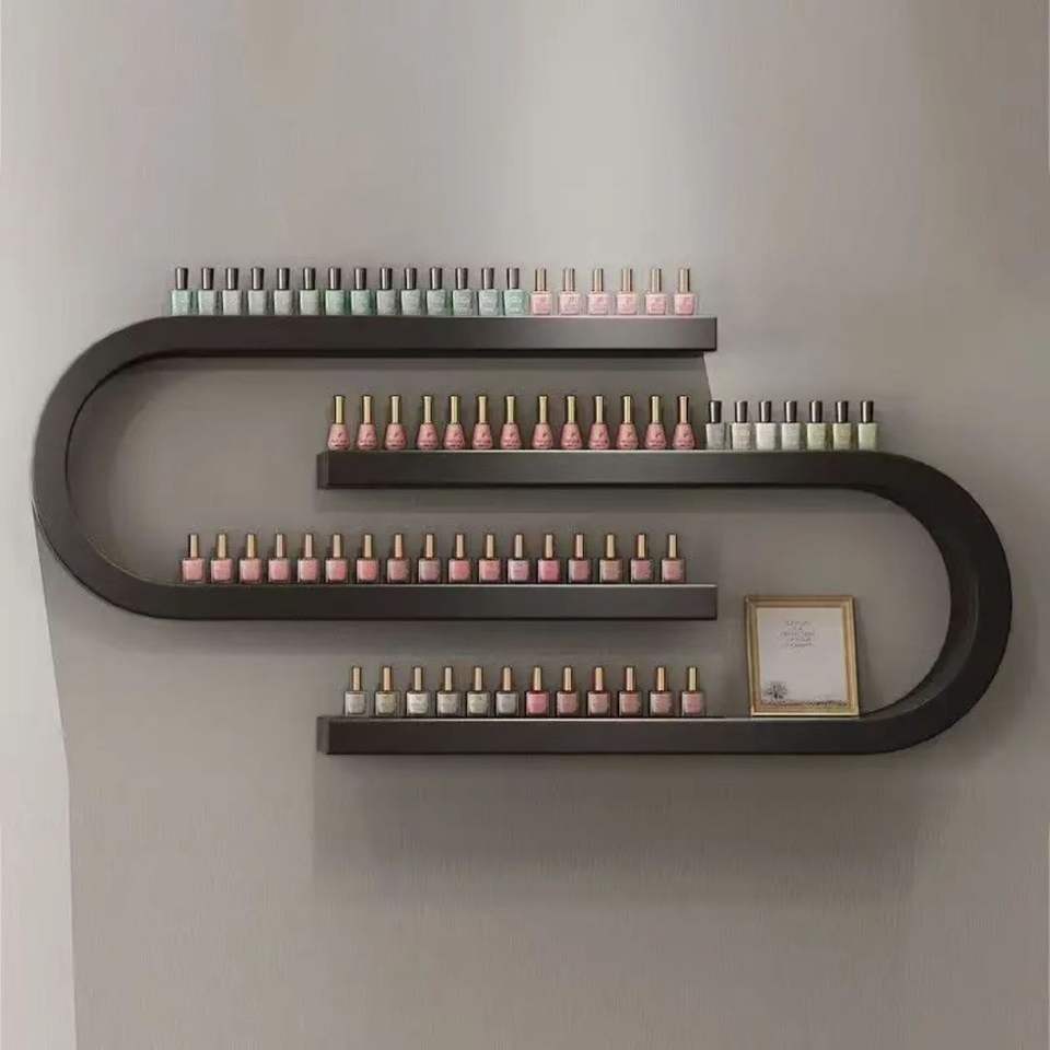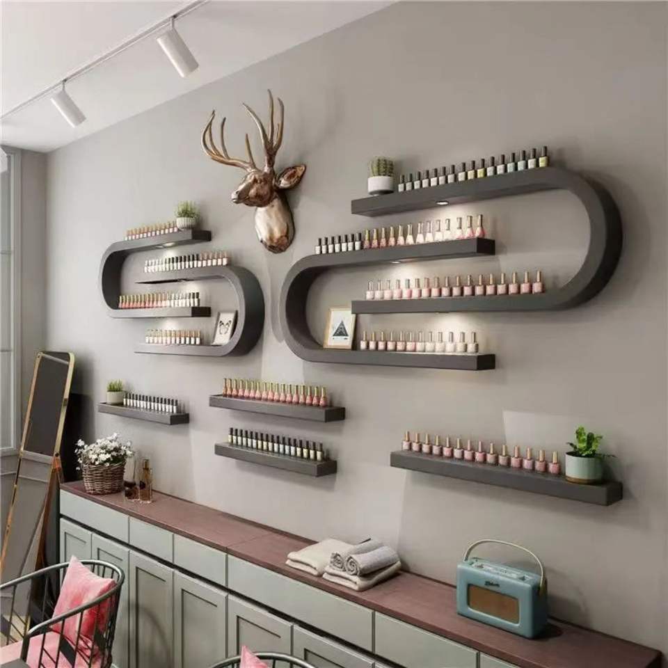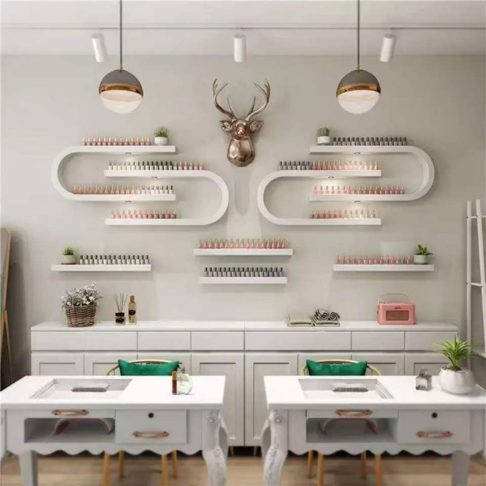 Modern Beauty Salon Wall-Mounted White Wood Nail Polish Wall Display Rack