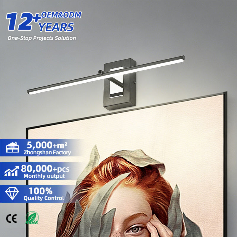 โคมไฟติดผนัง LED สำหรับห้องนอนทันสมัย 8 วัตต์ สีดำ ปรับได้ ใช้เป็นไฟส่องภาพได้ มาตรฐาน IP44 เหมาะสำหรับห้องน้ำและโรงแรม