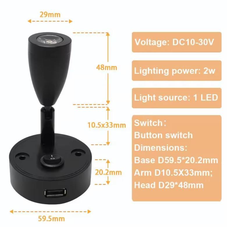 ไฟ LED ติดผนังสำหรับอ่านหนังสือไฟอลูมิเนียมสำหรับ RV Yacht DC 12V ชาร์จ USB สปอตไลท์แคมเปอร์บ้าน