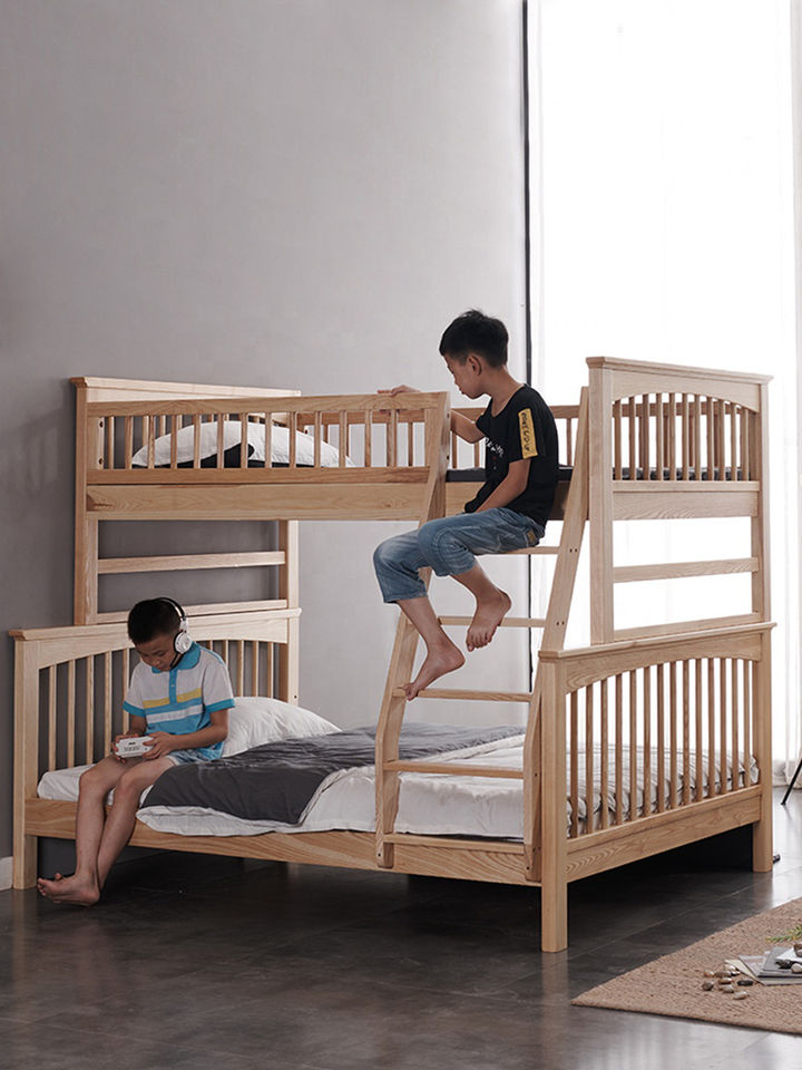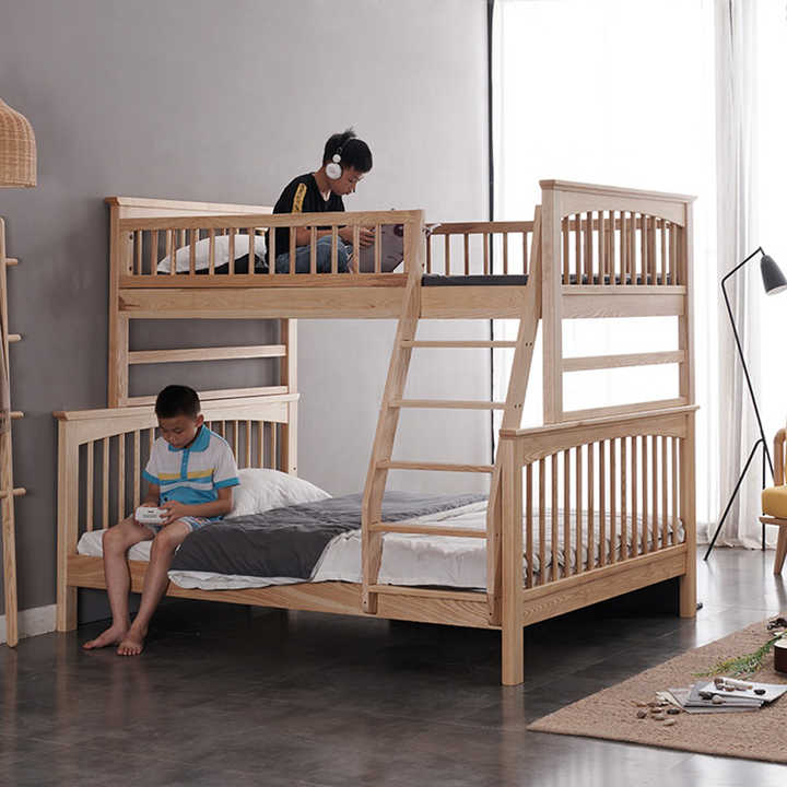 Modern Solid Wood Eco-Friendly Durable Bunk Bed for Kids School Bedroom Family Use