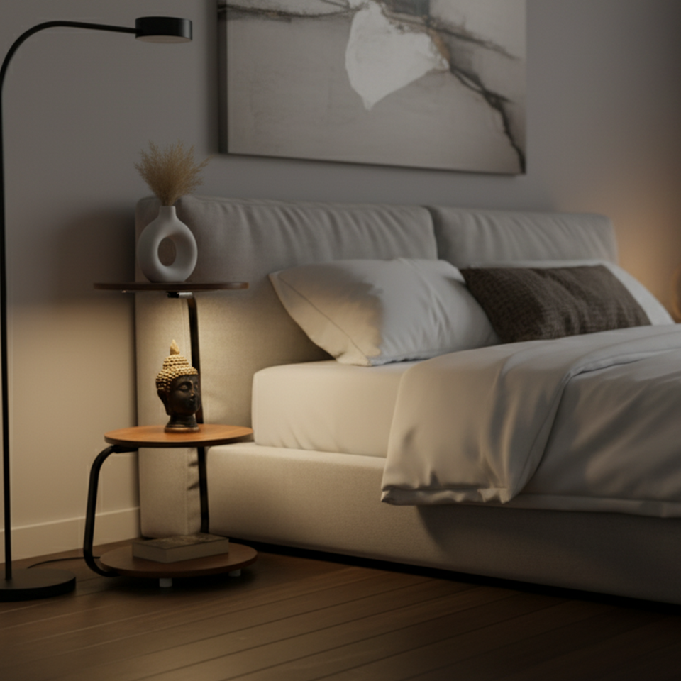 โต๊ะข้างเตียงไม้สักอะคาเซียแบบทันสมัยพร้อมไฟ LED | โต๊ะข้างเตียงพรีเมียมแบบมินิมอล 3 ลิ้นชัก สำหรับห้องนอนและโรงพยาบาล