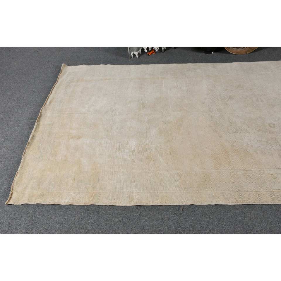 พรมขนสัตว์สีเบจแบบดั้งเดิมที่เป็นมิตรกับสิ่งแวดล้อมพรมแบบตุรกีขนาด4.8x11ฟุตแบบเรียบเย็บปะติดปะต่อกันลายห้องรับประทานอาหารที่มีน้ำยางรอง