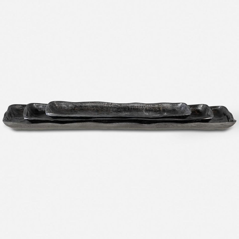ชุดถาดเสิร์ฟทรงสี่เหลี่ยมทำจากอลูมิเนียมสีดำทันสมัยจานตกแต่ง3ชิ้นสำหรับบ้านห้องครัวโรงแรมและร้านอาหาร