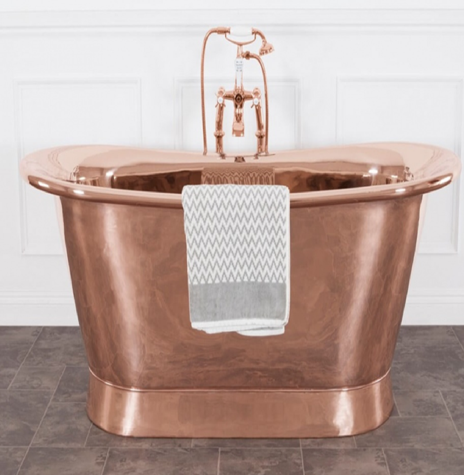 Modern Black Copper Double Slipper Freestanding Bathtub Solid Base Wholesome Prices Features Contrasting Soaking Bathroom