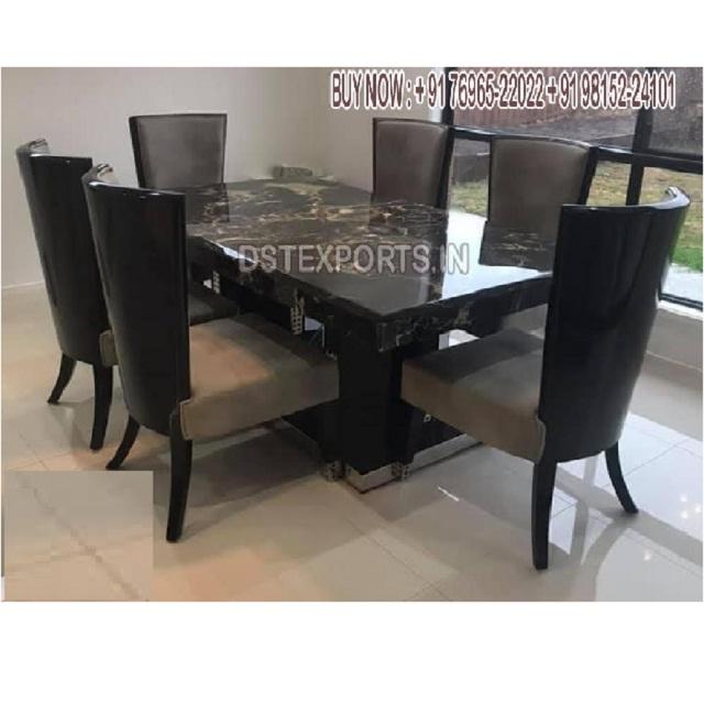 Modern Black Finish Top Marble Dining Table SetProduct name