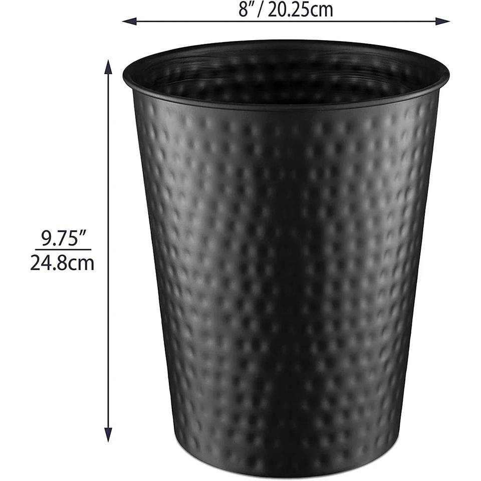 ถังขยะโลหะดีไซน์ทันสมัยสีดำแบบตอกลาย เหมาะสำหรับใช้ในห้องน้ำ ห้องนอน สำนักงาน และห้องพักโรงแรม ผลิตด้วยมือจากอินเดีย
