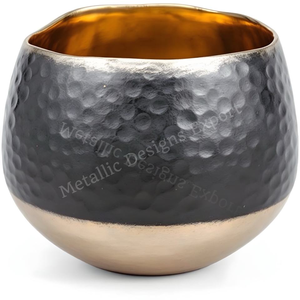 เชิงเทียนโลหะทุบสีดำแบบทันสมัยที่ไม่เหมือนใครตกแต่งภายในด้วยทองคำขัดเงาภายในโถเทียนที่ใช้งานได้