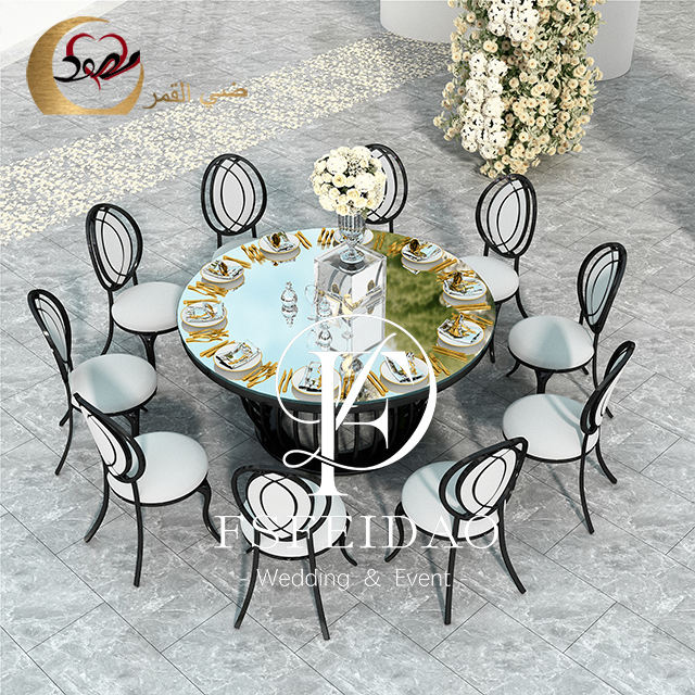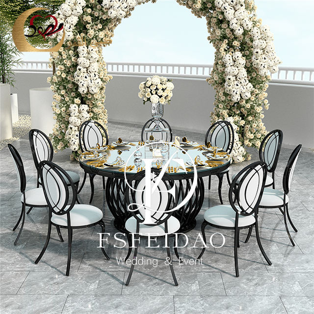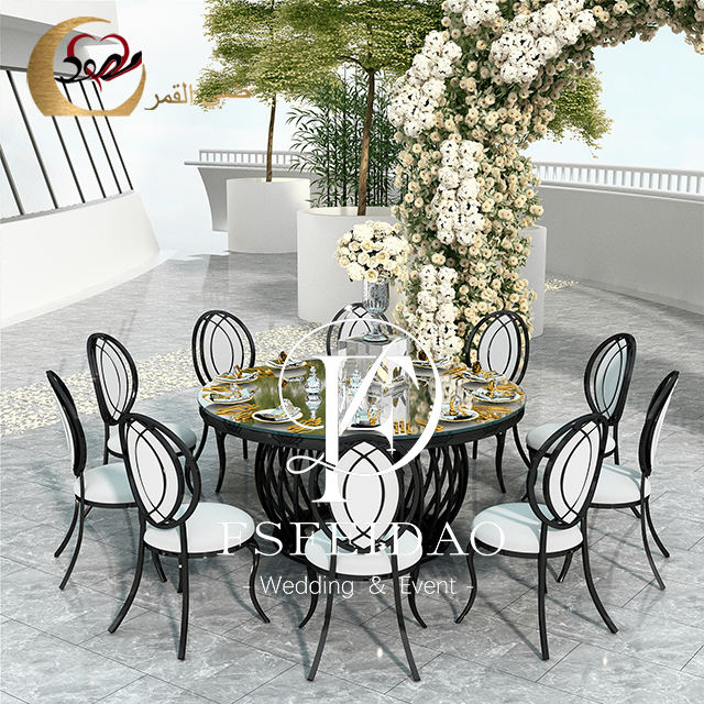 โต๊ะกลมกระจกโลหะสีดำแบบโมเดิร์นโต๊ะอาหาร8ที่นั่งสำหรับงานอีเว้นท์