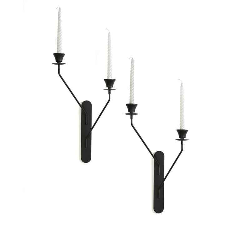 เชิงเทียนติดผนังเหล็กสีดำสไตล์โมเดิร์น ของตกแต่งบ้าน ห้องนั่งเล่น งานศิลปะโลหะเรขาคณิตสุดหรู แขวนแนวตั้ง