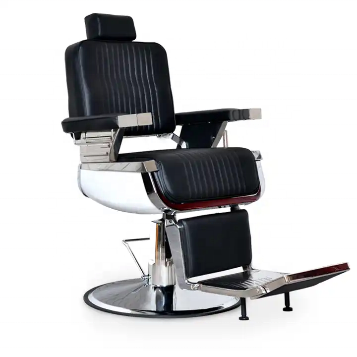 เก้าอี้ตัดผมหนังสีดำทำจากโลหะสีเงินแบบทันสมัยสำหรับผู้ชาย