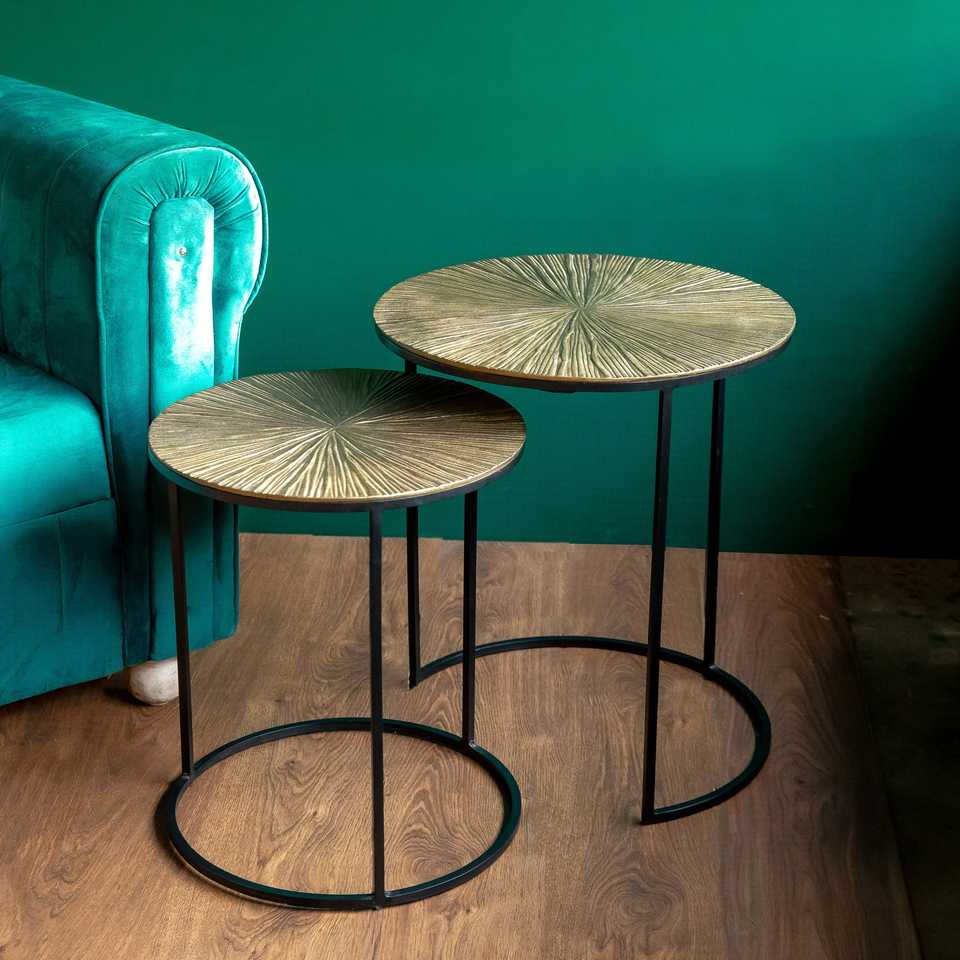 โต๊ะกาแฟซ้อนกันแบบโมเดิร์น ท็อปหินอ่อนสีดำ สำหรับตกแต่งบ้าน ชุดโต๊ะข้างทรงกลมโครงโลหะ ประหยัดพื้นที่ หรูหรา เหมาะสำหรับโรงแรม