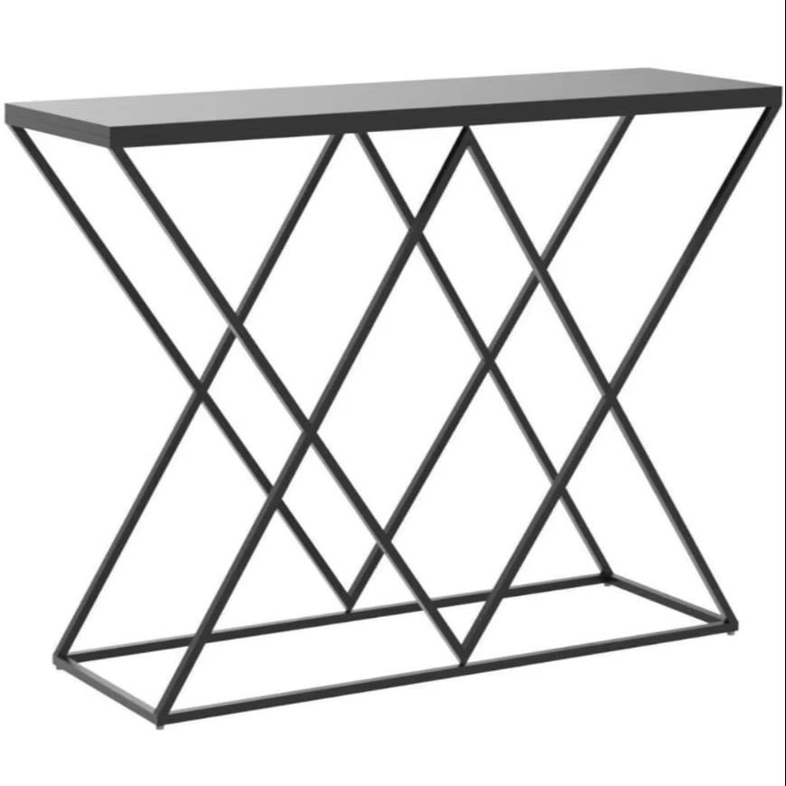 โต๊ะคอนโซลโลหะสีดำที่ทันสมัยโครงสร้าง X-ขาสำหรับการเข้าโรงแรมวิลล่าโต๊ะข้างโซฟาอุตสาหกรรมสำหรับห้องนั่งเล่นห้องโถง