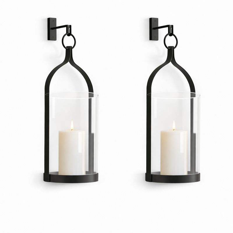 Modern Black Metal Hanging Glass Candle Wall Sconce Set Enclosed Holder Strong Build Warm Glow Stylish Home Decor