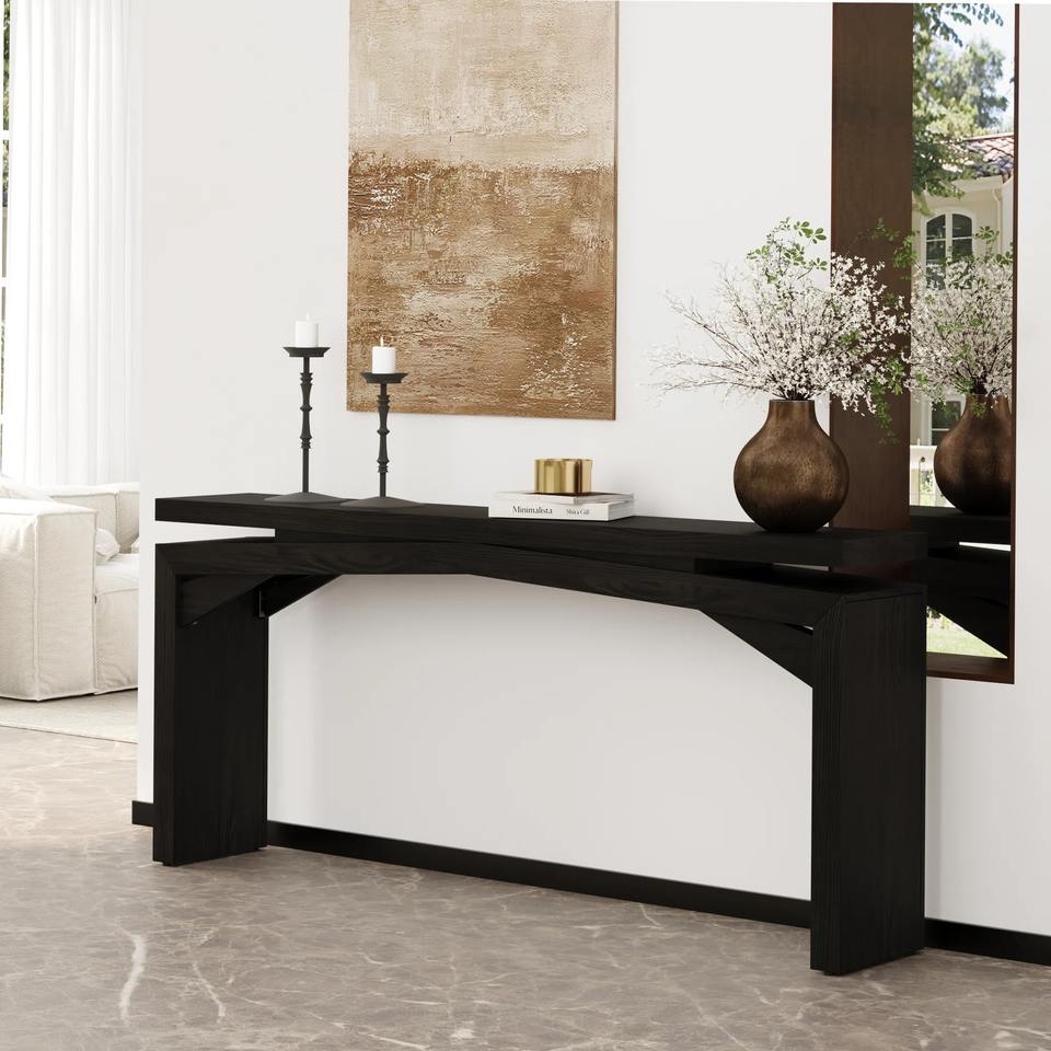 โต๊ะคอนโซลแบบปรับเปลี่ยนได้สีดำกระจกเงา ดีไซน์โลหะสไตล์สถาปัตยกรรม เฟอร์นิเจอร์ทางเข้าห้องโถงยาวพิเศษ