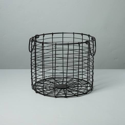 ตะกร้าผลไม้โลหะรูปวงรีสีดำทันสมัย ตะกร้าเหล็กแข็งแรงสำหรับเสิร์ฟขนมปัง ชามใส่ของในครัว ที่จัดระเบียบบนเคาน์เตอร์ครัว ของตกแต่งบ้าน
