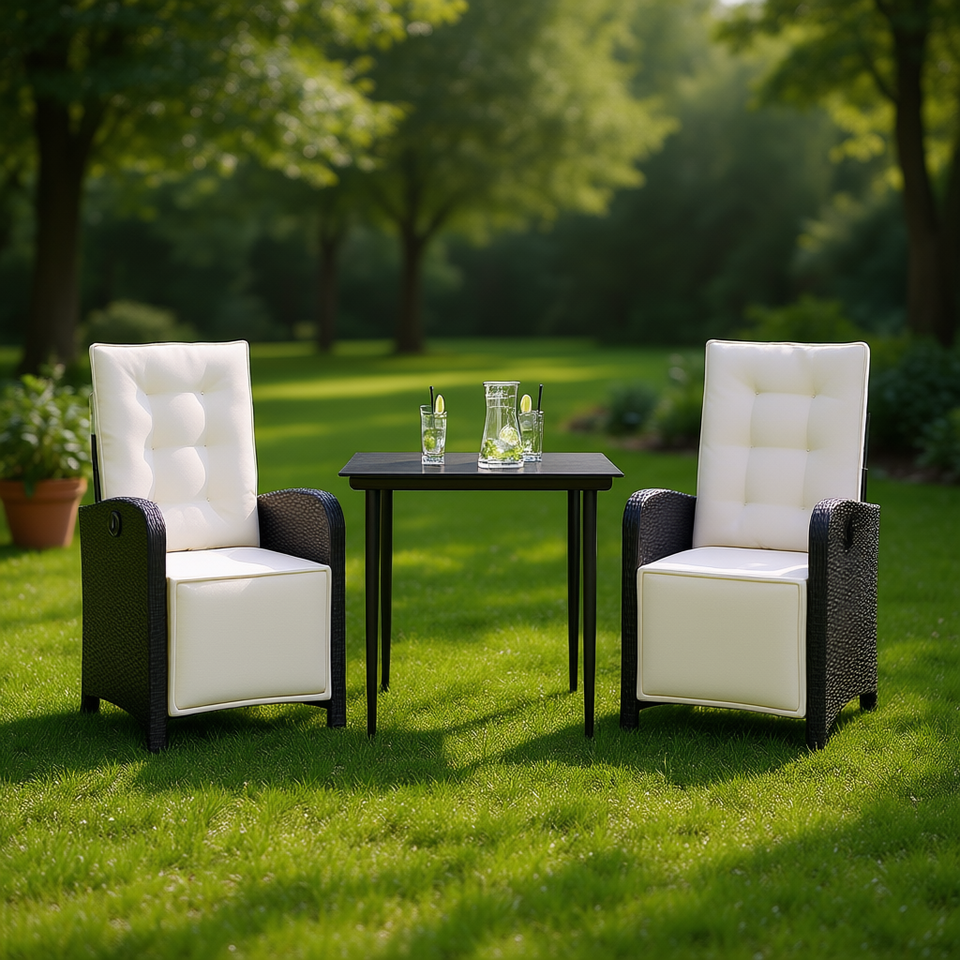 ชุดโต๊ะบิสโทรหวายเทียมสีดำทันสมัย พร้อมเบาะรองนั่ง เฟอร์นิเจอร์สำหรับสวนกลางแจ้ง 2 ที่นั่ง ดีไซน์ร่วมสมัย