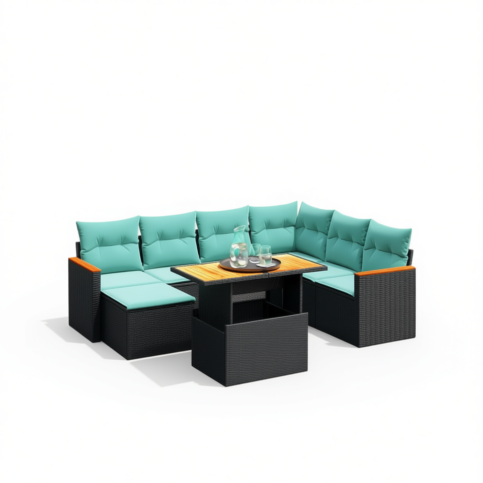 ชุดโซฟาหวายสังเคราะห์สีดำทันสมัย พร้อมเบาะรองนั่ง สำหรับ 8 คน เฟอร์นิเจอร์กลางแจ้ง ดีไซน์ร่วมสมัย