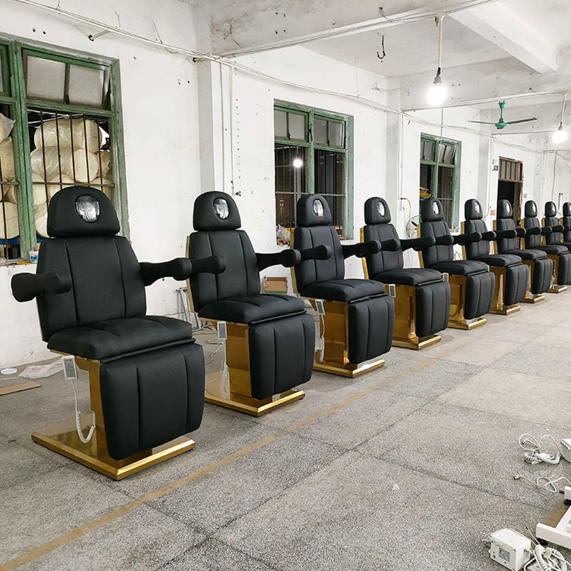 Modern Black Pu Leather Memory Foam Massage Table Electric Luxury Gold Base Massage Facial Bed for Sale