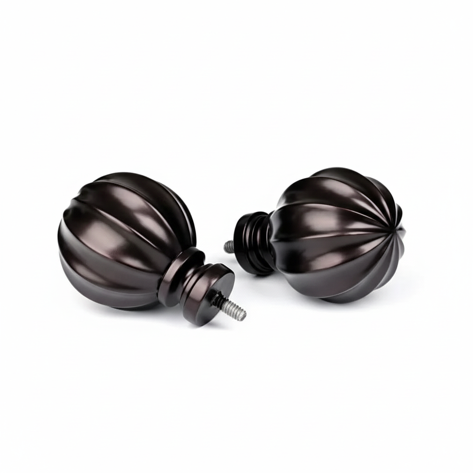 Modern Black Ridged Sphere Finial Curtain Rod End Cap With Screw Base Decorative Ball Topper Window Treatment Hardware Accessory