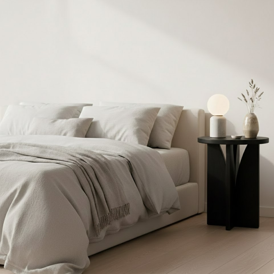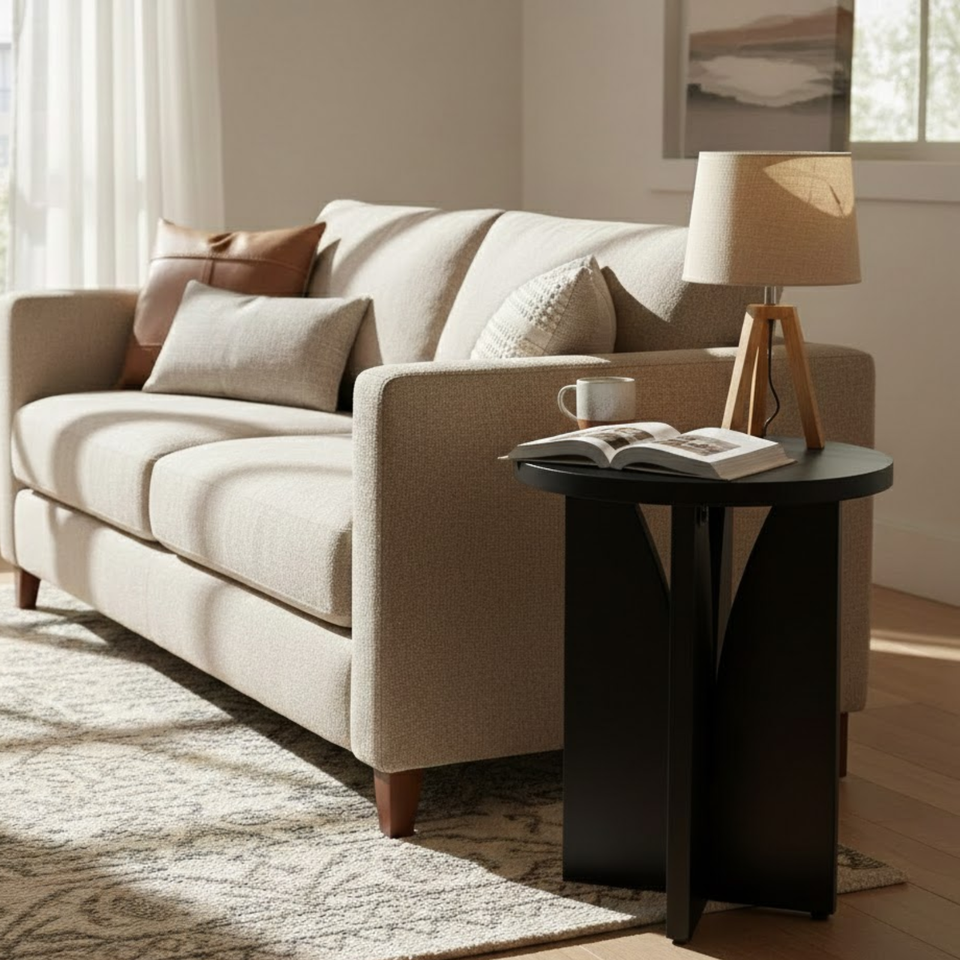 โต๊ะข้างสีดำทันสมัยพร้อมโครงสร้างแข็งแรง | โต๊ะข้างเตียงทันสมัยและกะทัดรัดสำหรับห้องนั่งเล่น ห้องนอน และพื้นที่ขนาดเล็ก