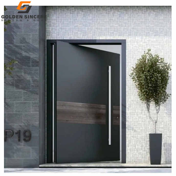 Modern Black Sliding Open Entrance Security Villas Smooth Stainless Steel Exterior Aluminum Alloy Frame Glass Front Pivot Window