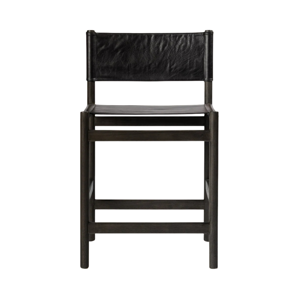 เก้าอี้บาร์ไม้สีดำทันสมัยพร้อมเบาะและพนักพิงหนัง PU สไตล์มินิมอล