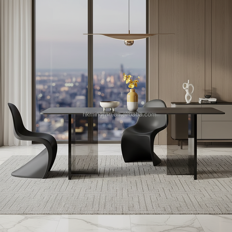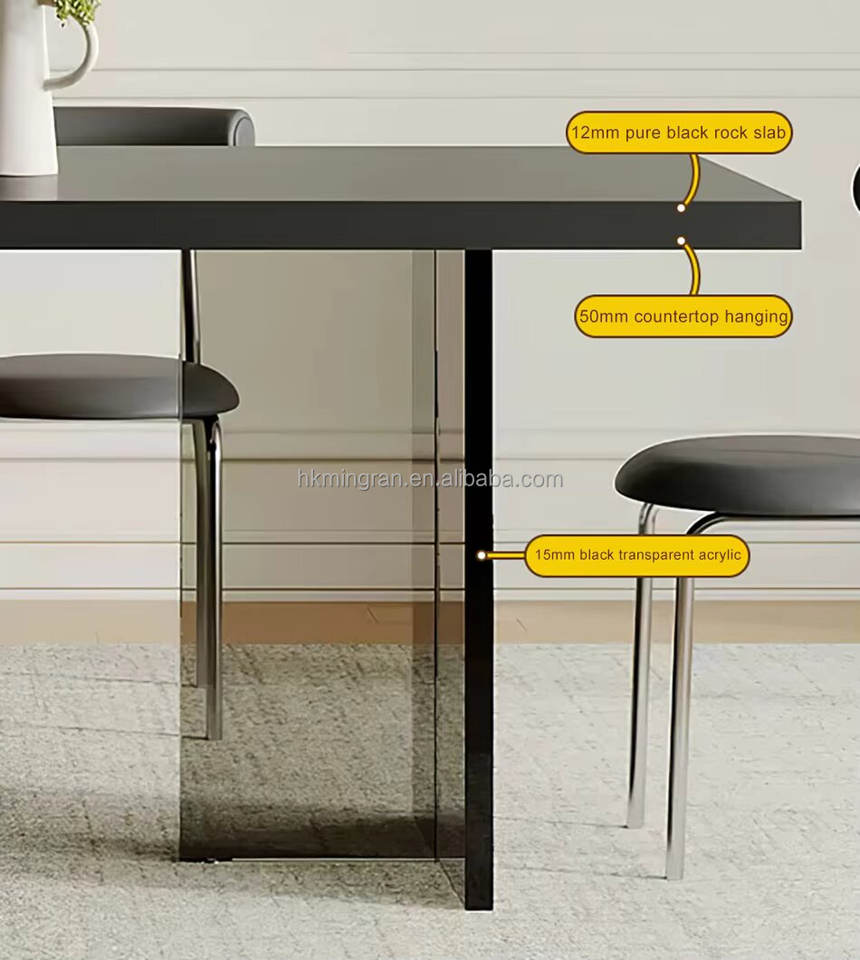 โต๊ะอาหารไม้เนื้อแข็งสีดำทันสมัยสำหรับบ้านขนาดเล็ก ดีไซน์หรูหรา พร้อมขาอะคริลิก