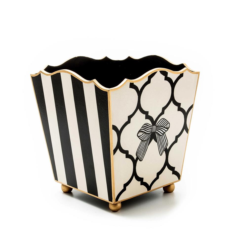ถังขยะดีไซน์โบว์น่ารักสีดำขาวทันสมัยสำหรับห้องเด็ก ห้องนอนเด็กผู้หญิง โต๊ะเรียน และตกแต่งโต๊ะข้าง ขายส่งจากอินเดีย