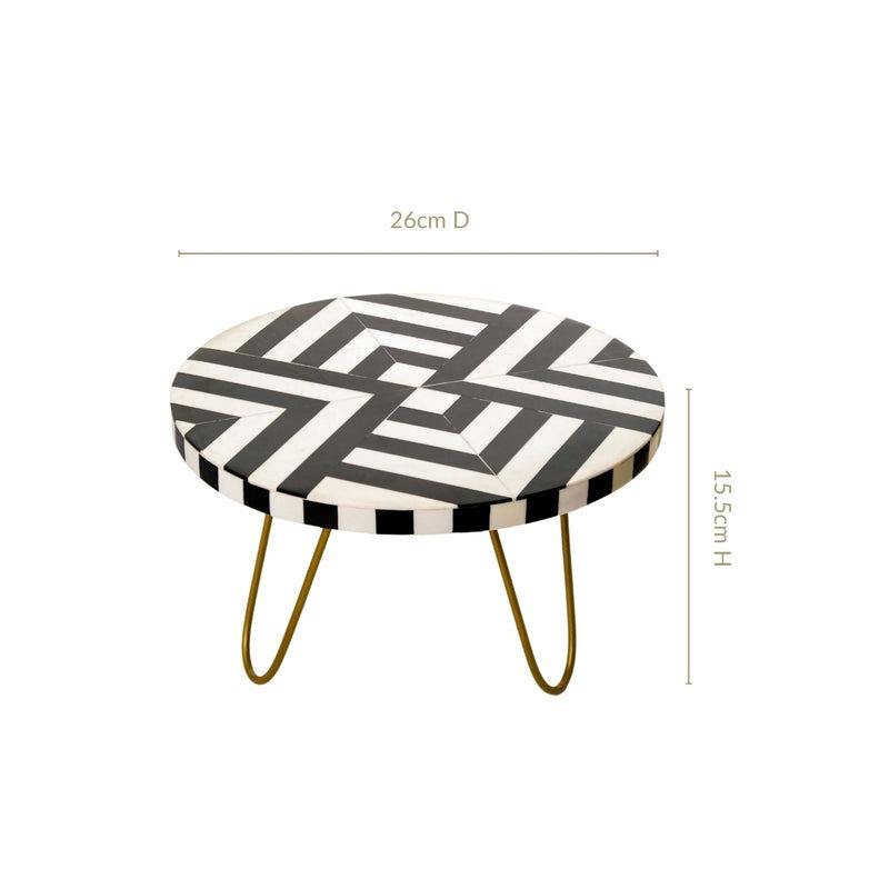 ขาตั้งเค้กทรงกลมลายเรขาคณิตสีดำขาวทันสมัย พร้อมฐานรองแบบกิ๊บติดผมสีทอง สำหรับงานแต่งงานและงานเลี้ยง
